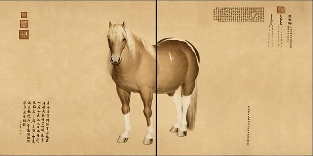 此马是科尔沁君王诺们额尔图稣图于乾隆八年(公元1743)进贡,郎世宁奉命绘制此图。 观看雪点雕会有一种大气帝王之相的感觉,尤其是炯炯有神的眼神,站姿祥而不燥、威而不俗。在十骏中无论是外型或是命名,雪点雕都堪称是帝王最爱的珍宝,被称为“帝王之星”真是恰如其分。